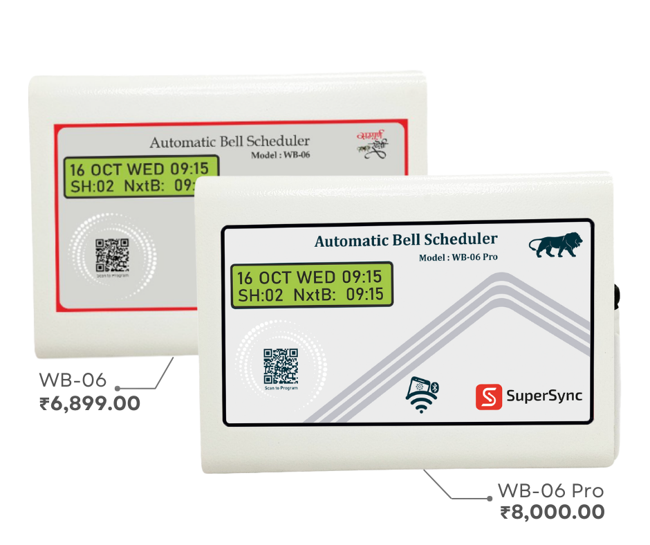 The WB-06 comes with a 1-year standard warranty covering manufacturing defects and hardware malfunctions under normal usage conditions. For terms & conditions visit: https://automaticschoolbell.in/warranty-terms-and-conditions/