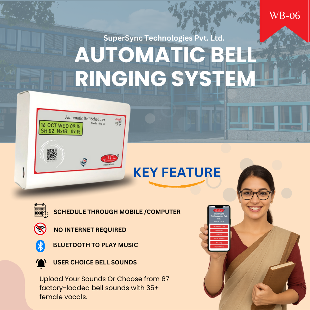 SuperSync Technologies is a trusted name in smart automation systems for schools and industries. All products, including WB-06, are manufactured with rigorous quality checks to ensure lasting performance and safety.